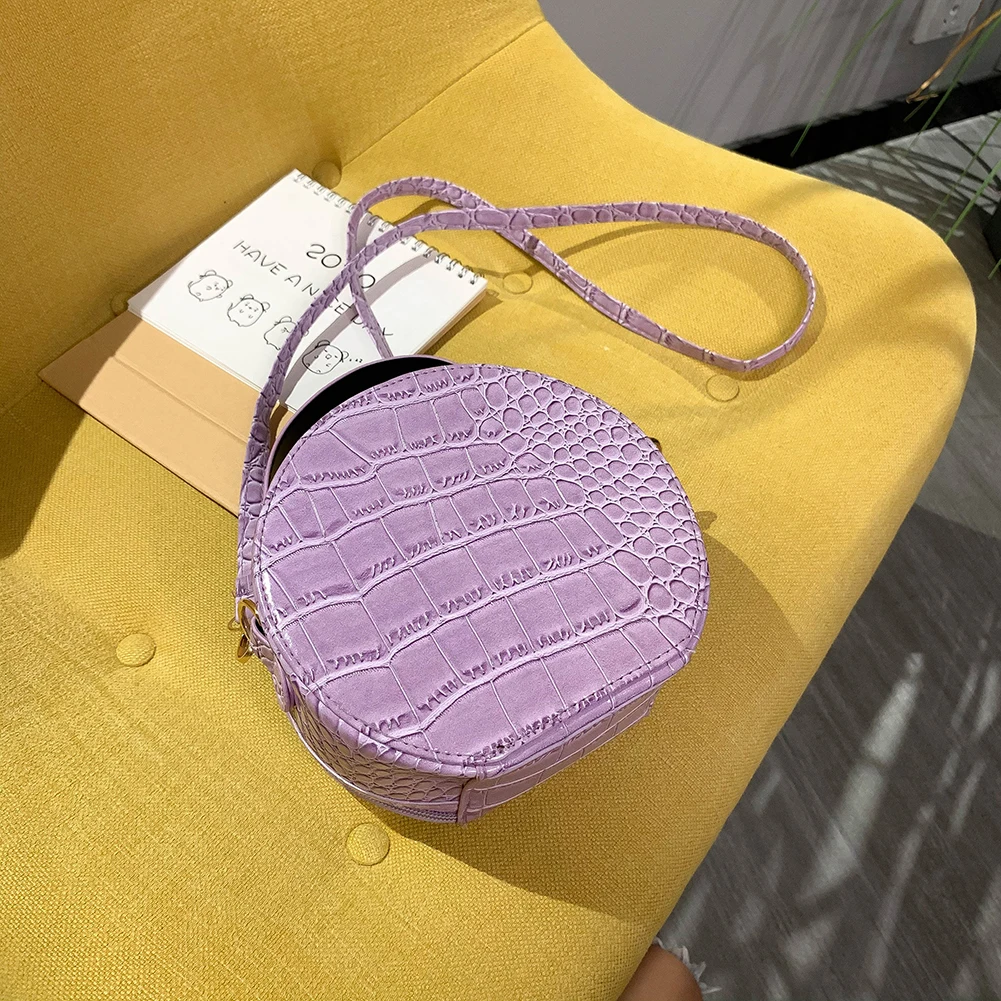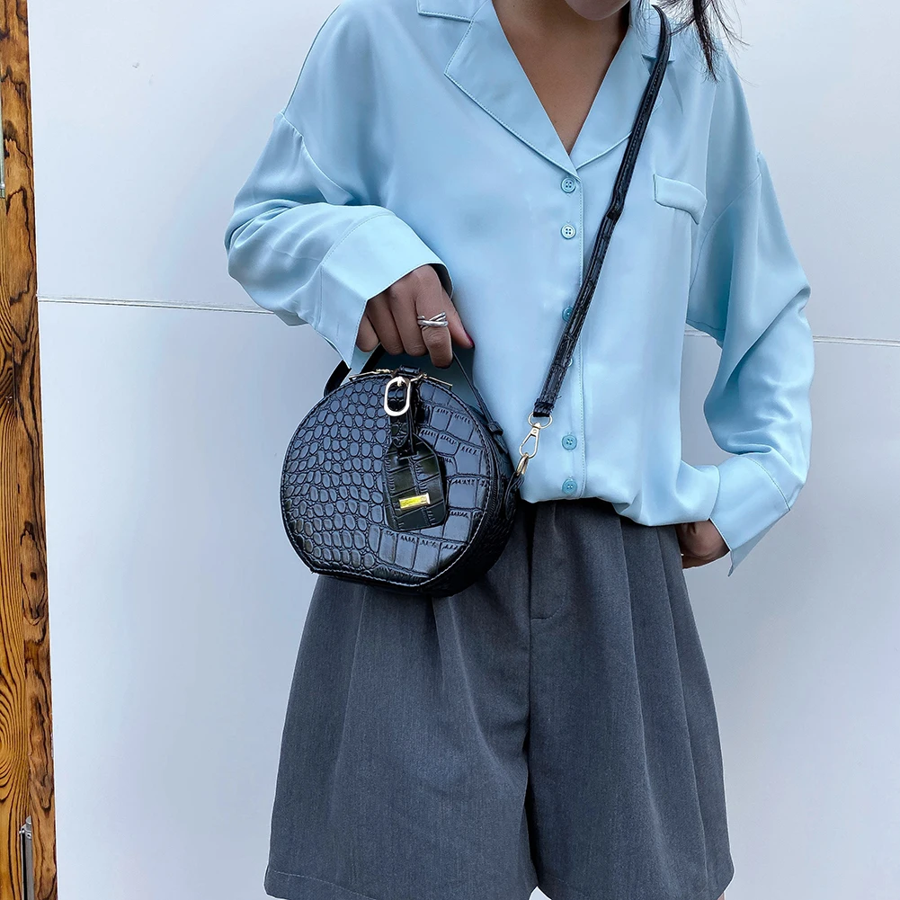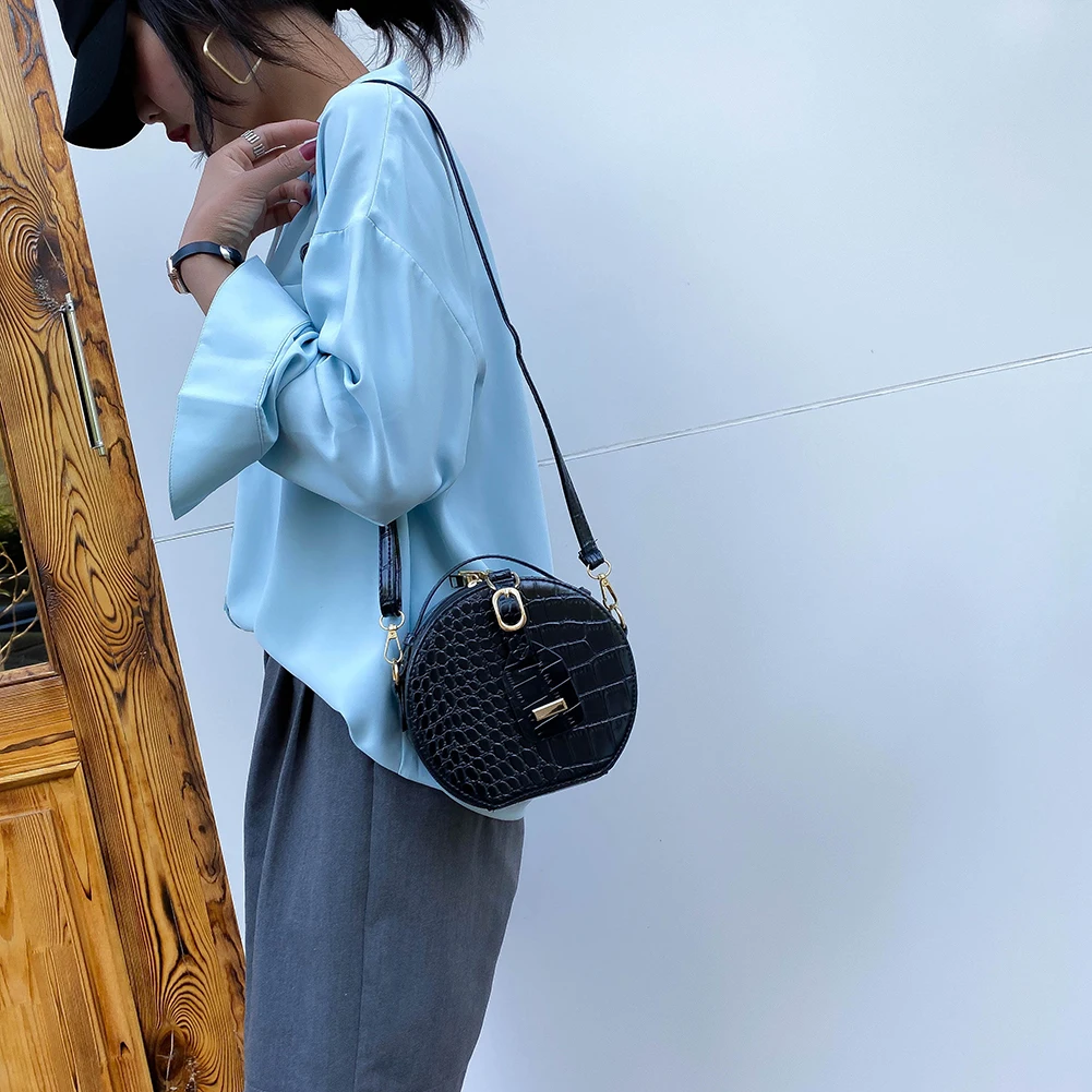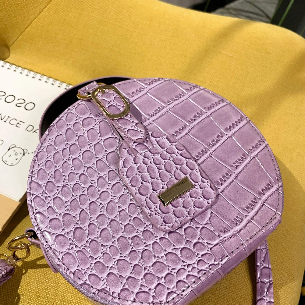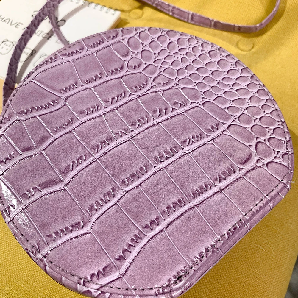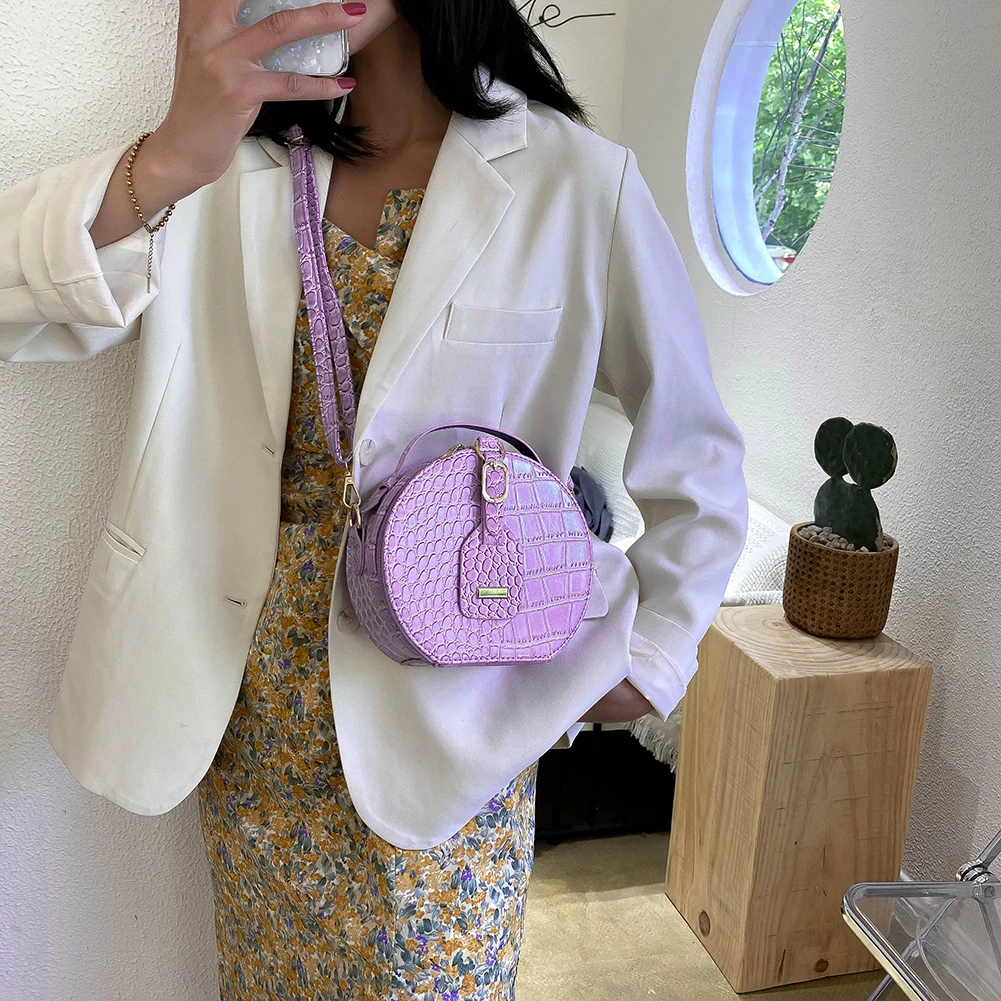 Fashion Women Alligator Pattern Shoulder Bag Round Circle Purse Totes Lady PU Leather Small Zipper Solid Color Messenger Satchel Handbags