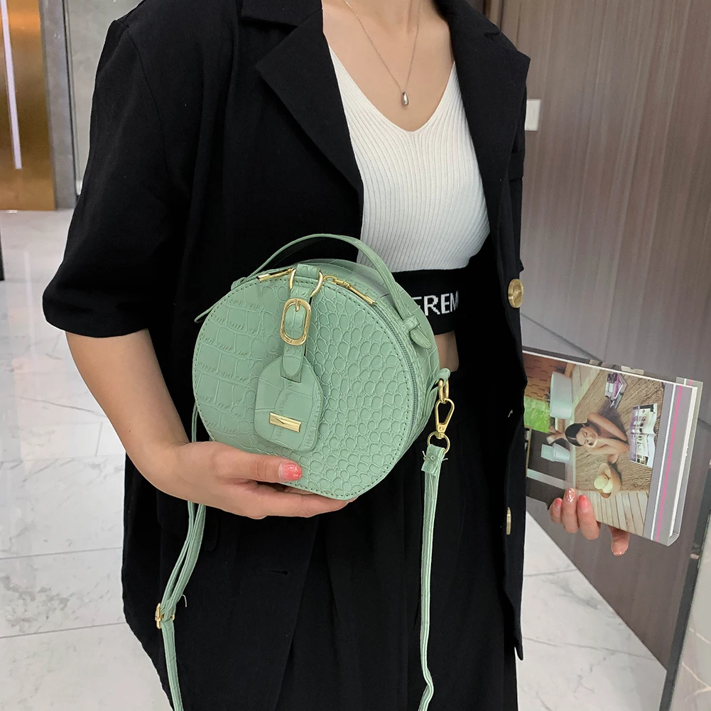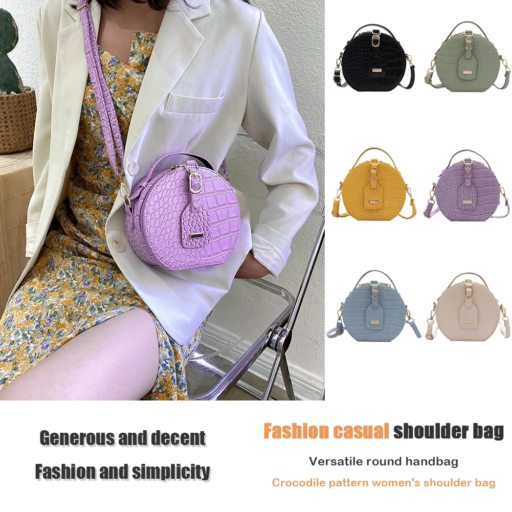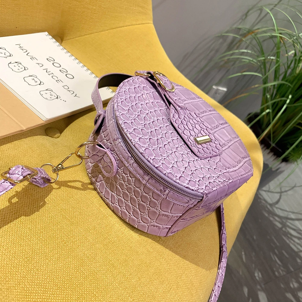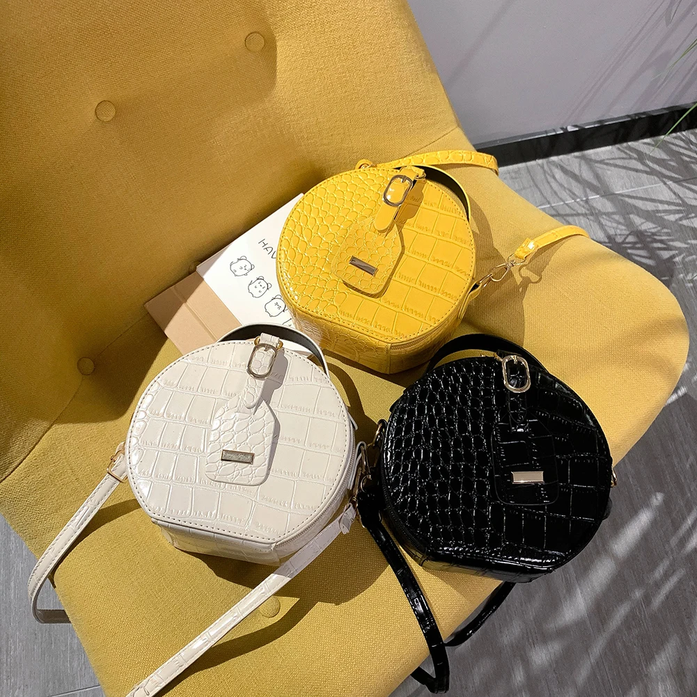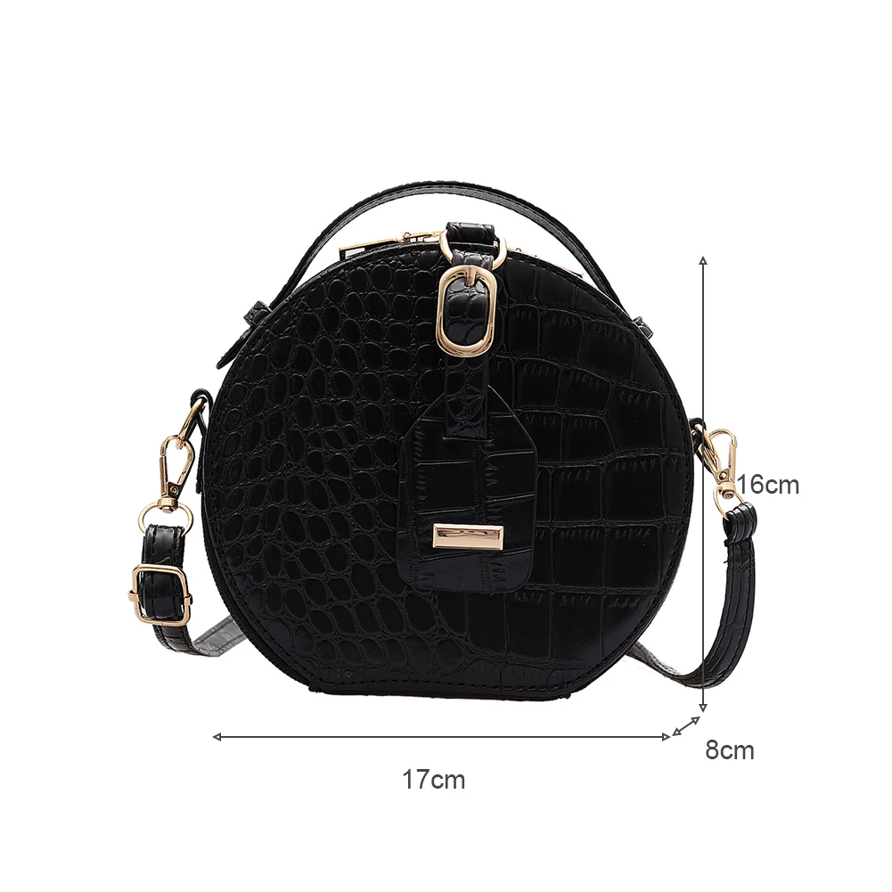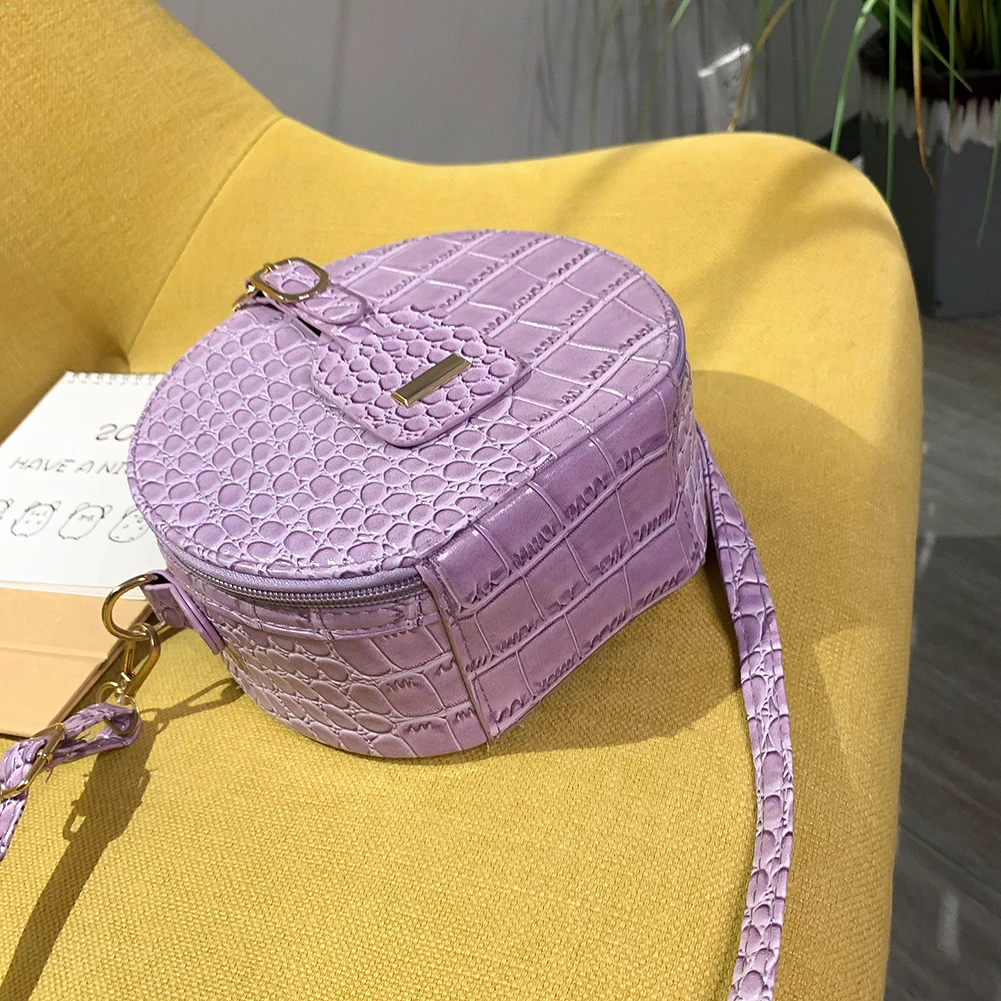 Fashion Women Alligator Pattern Shoulder Bag Round Circle Purse Totes Lady PU Leather Small Zipper Solid Color Messenger Satchel Handbags