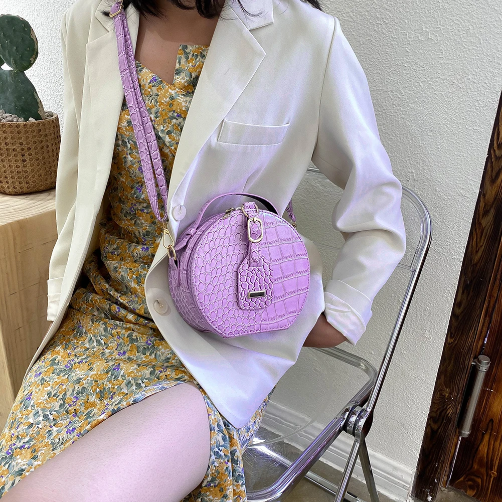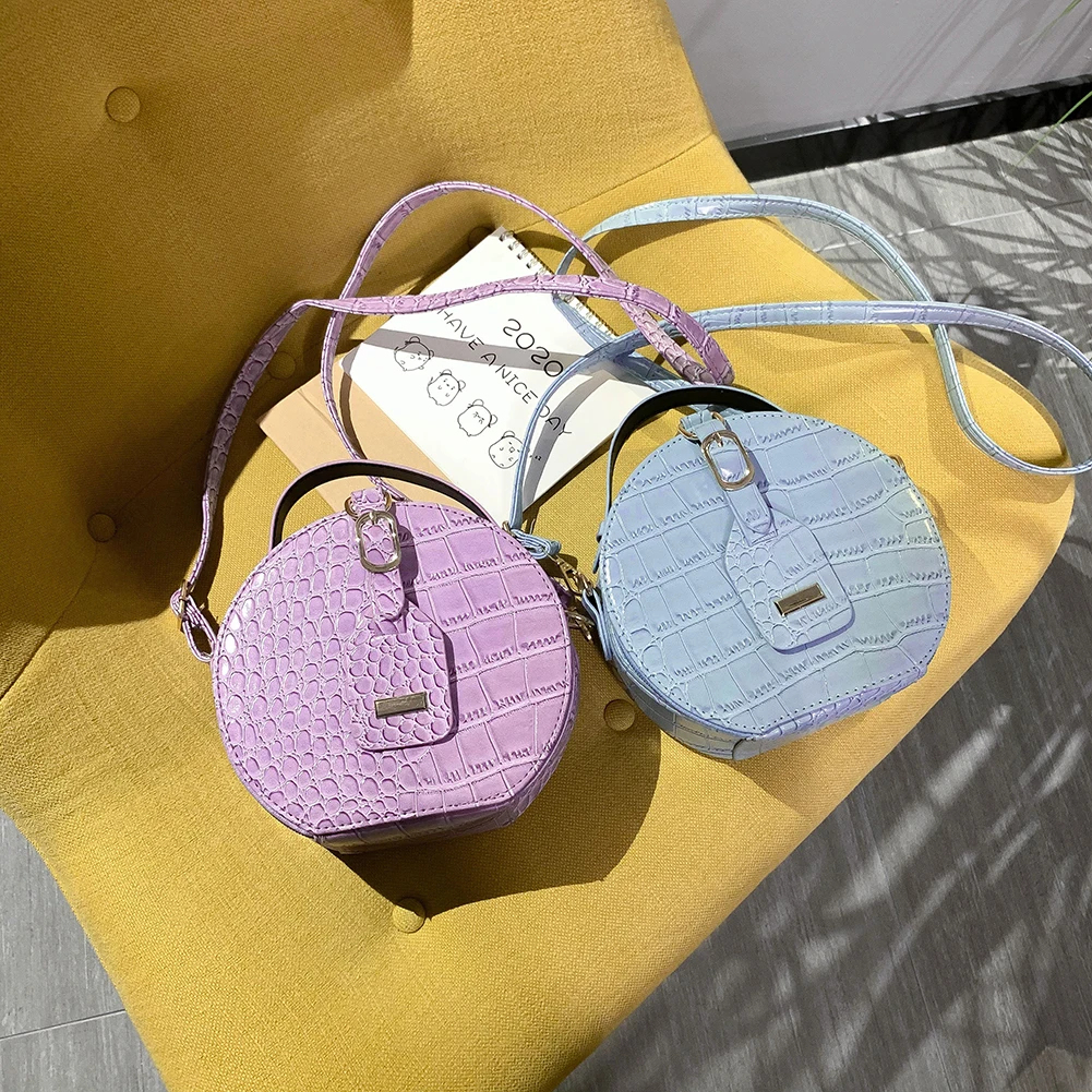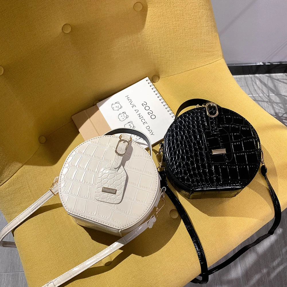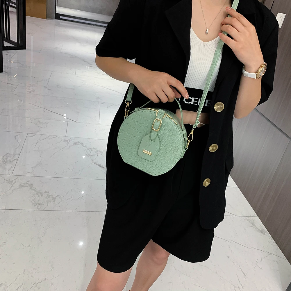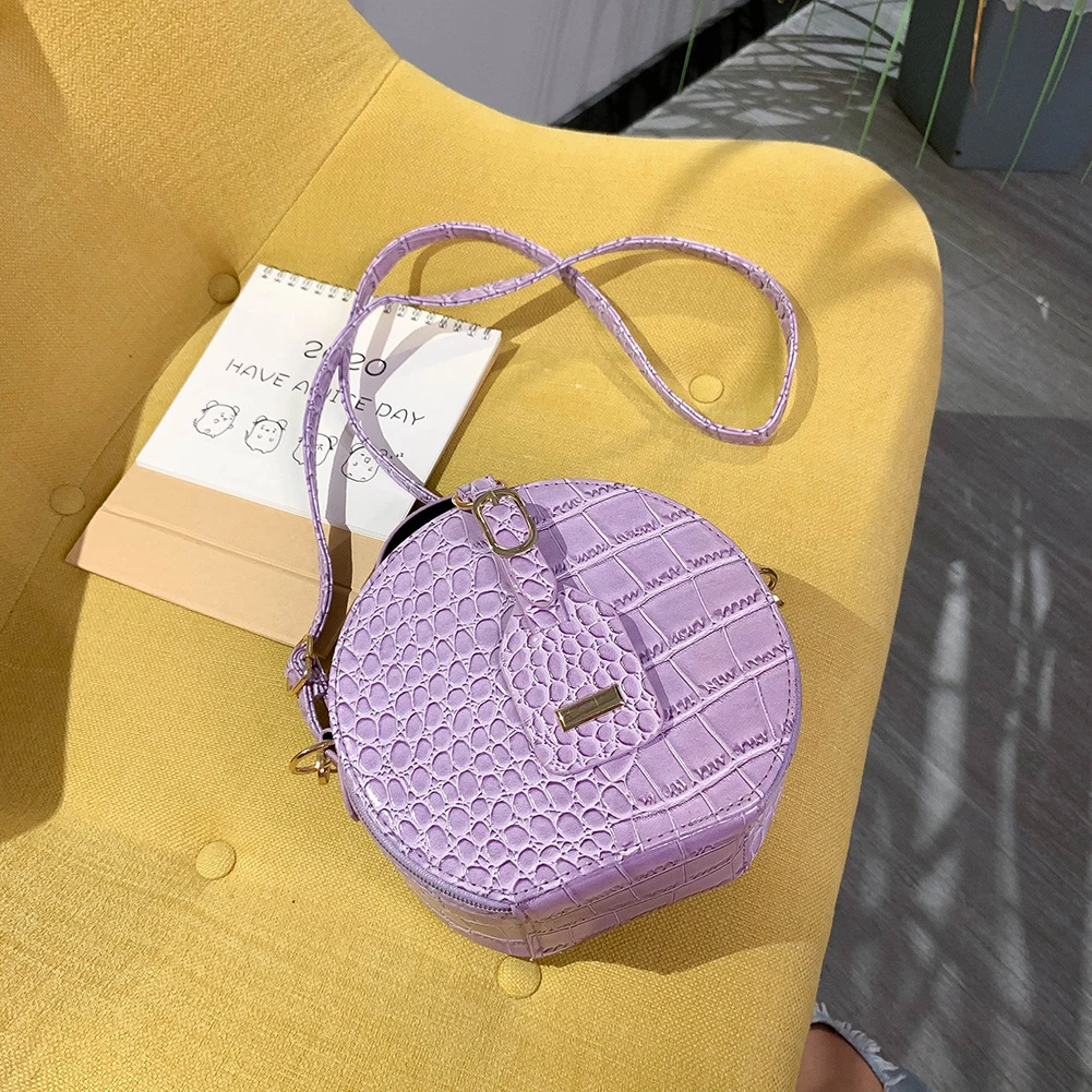 Fashion Women Alligator Pattern Shoulder Bag Round Circle Purse Totes Lady PU Leather Small Zipper Solid Color Messenger Satchel Handbags