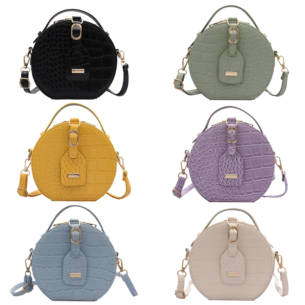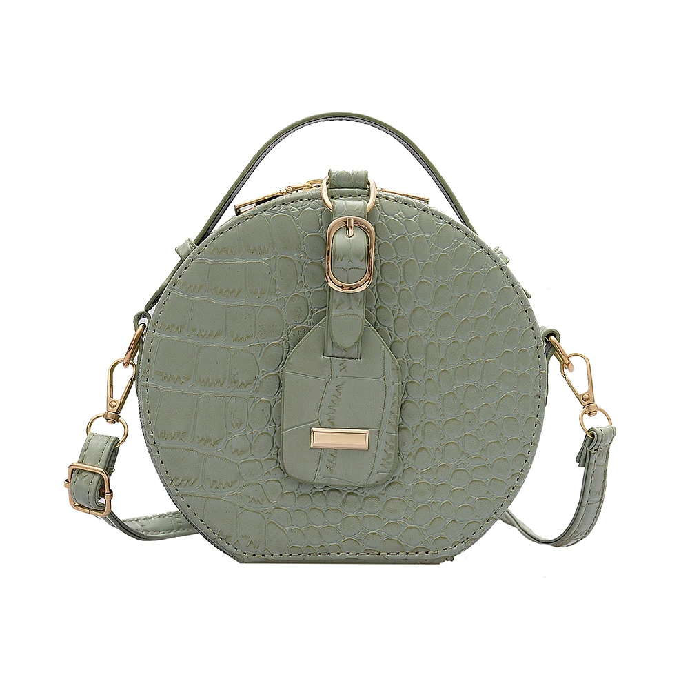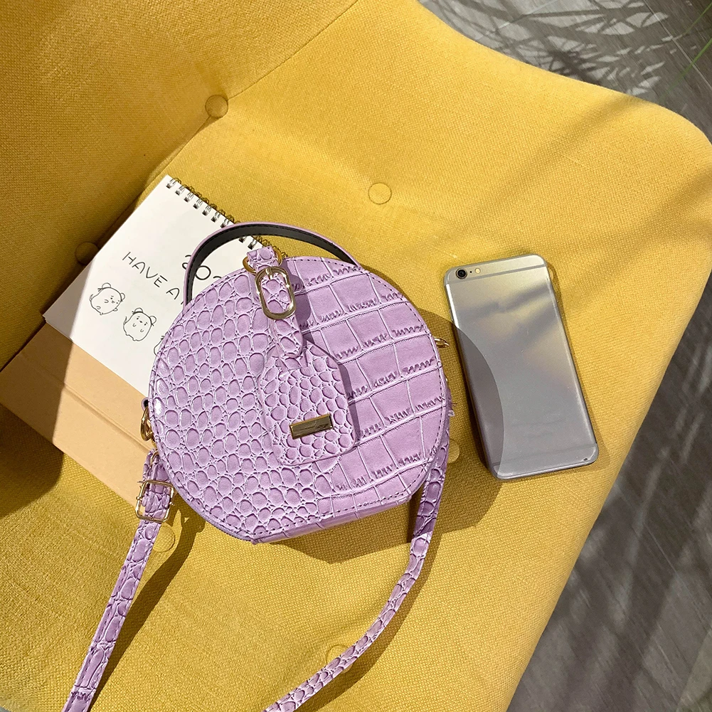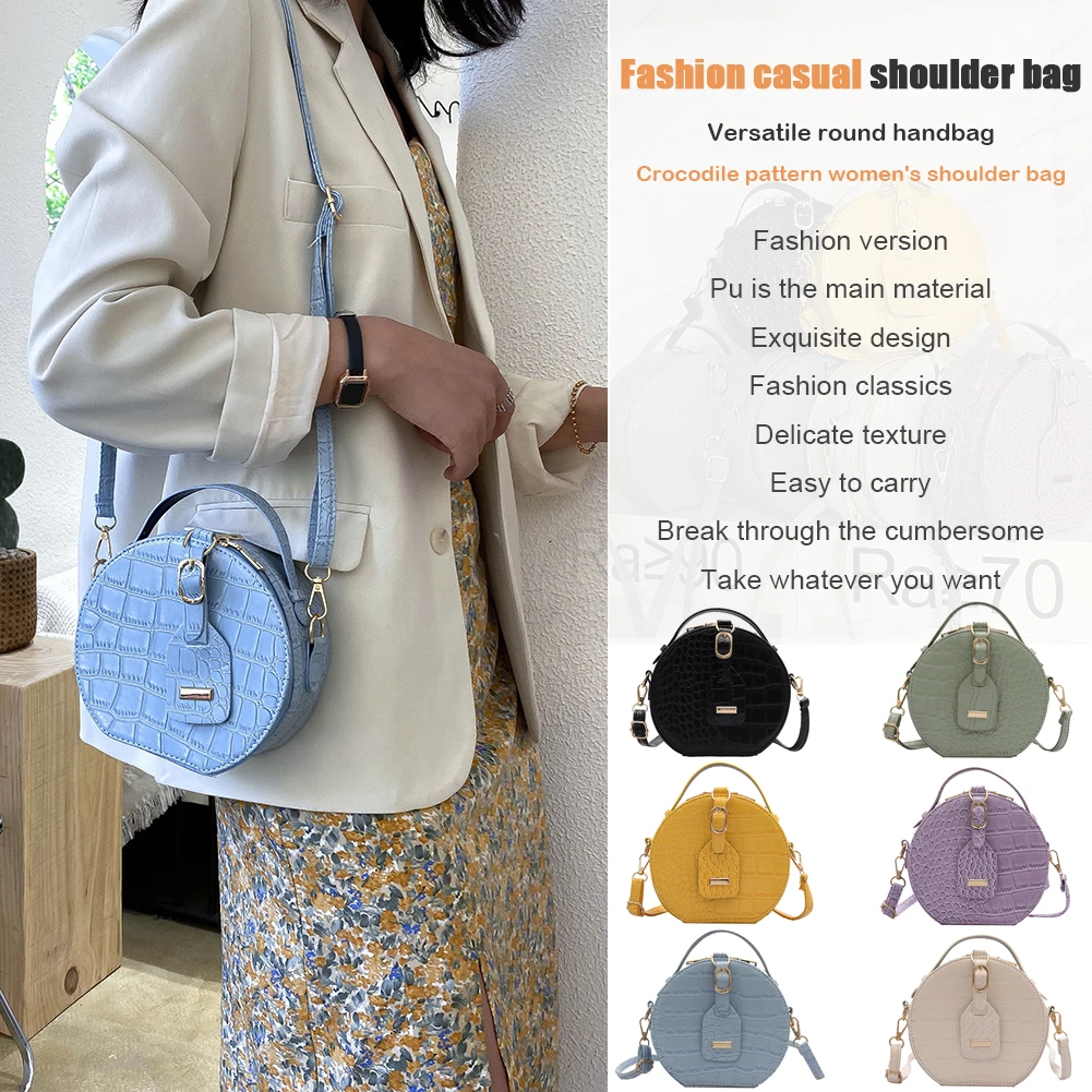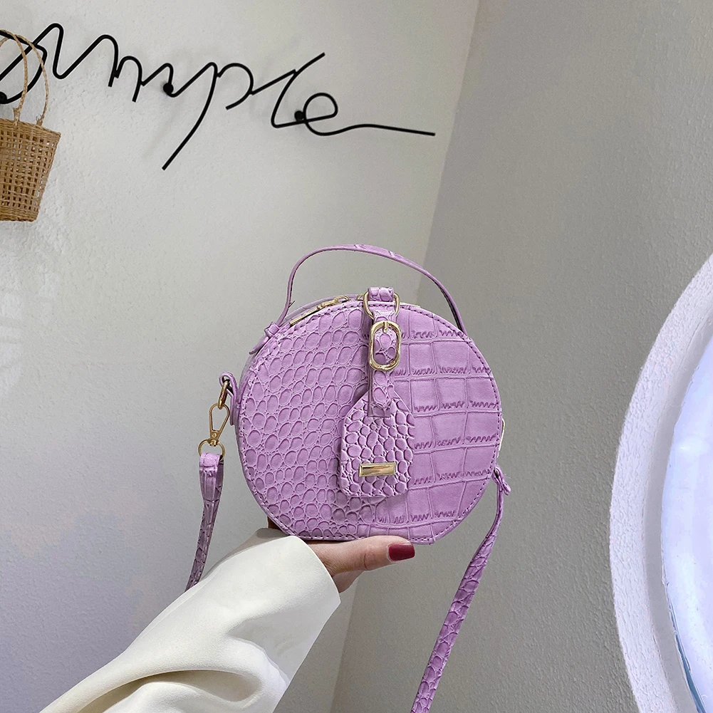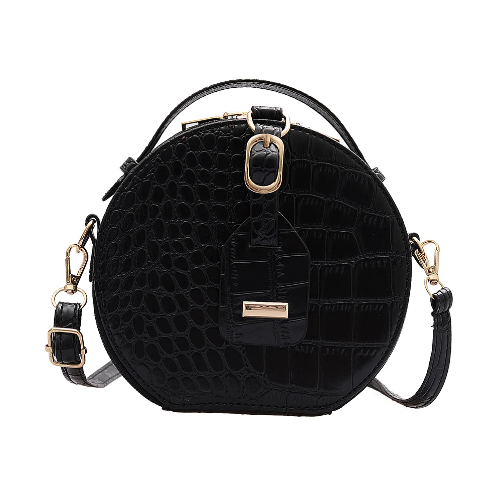 Fashion Women Alligator Pattern Shoulder Bag Round Circle Purse Totes Lady PU Leather Small Zipper Solid Color Messenger Satchel Handbags