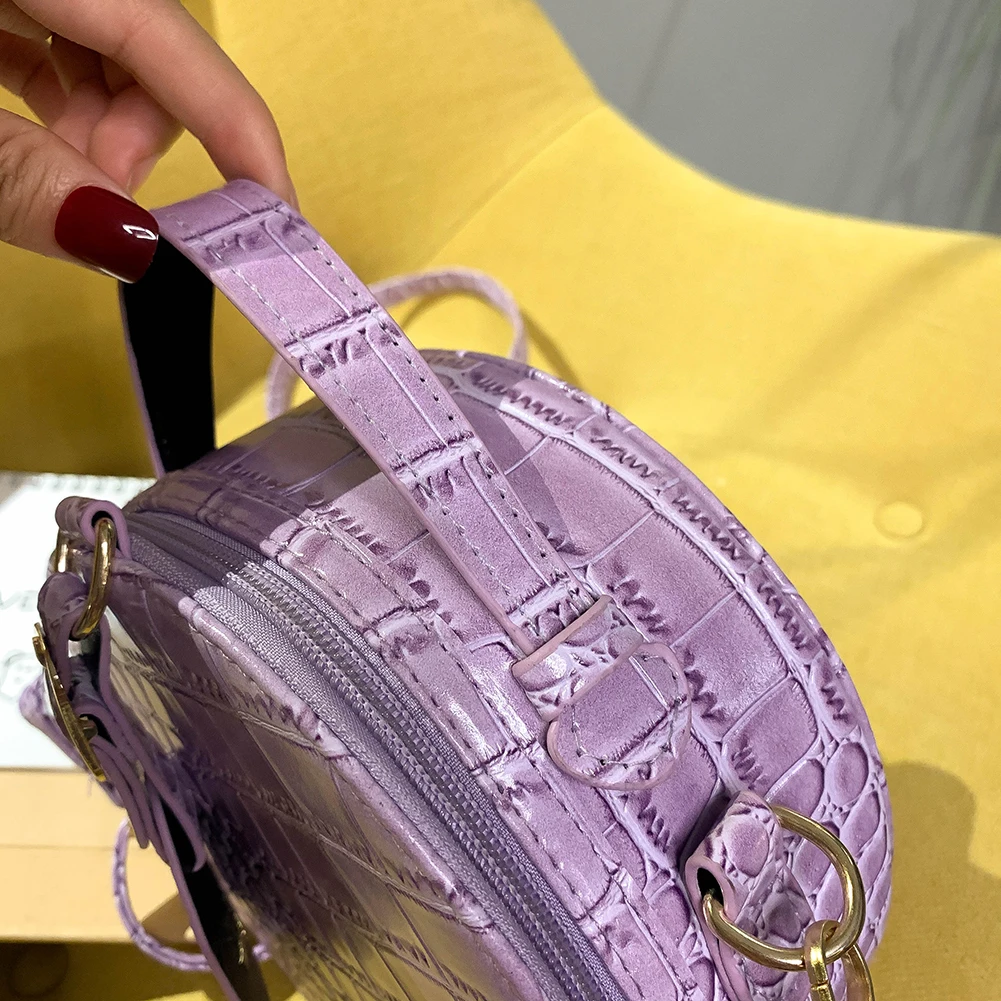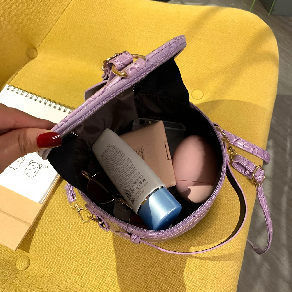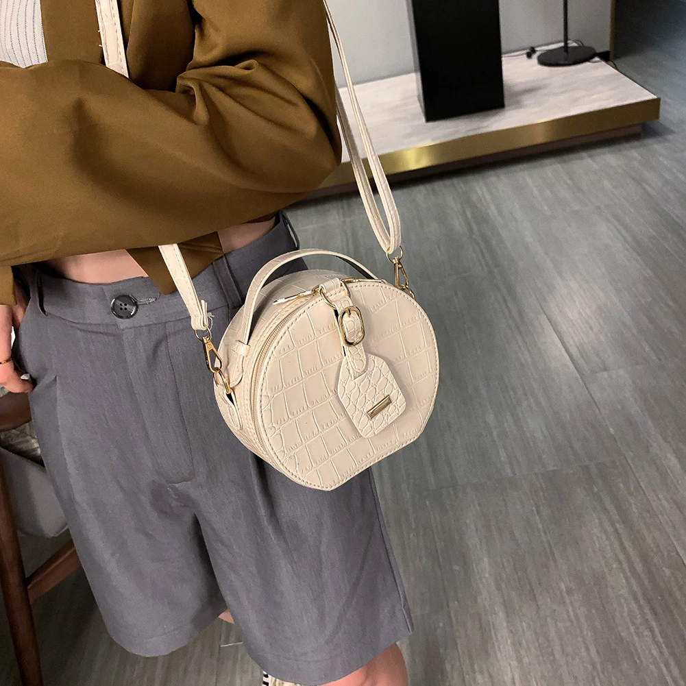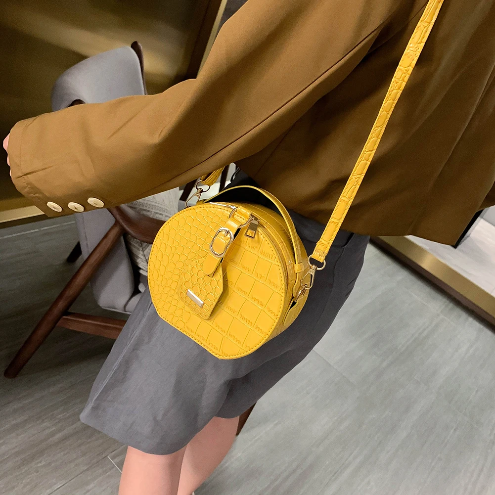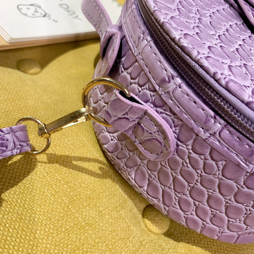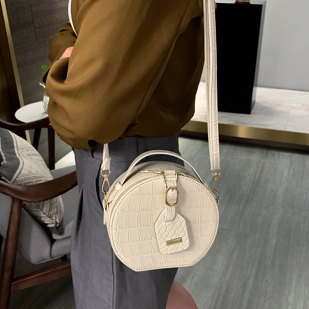 Fashion Women Alligator Pattern Shoulder Bag Round Circle Purse Totes Lady PU Leather Small Zipper Solid Color Messenger Satchel Handbags