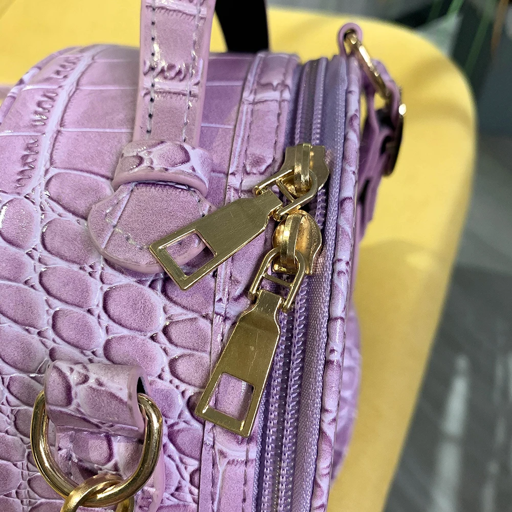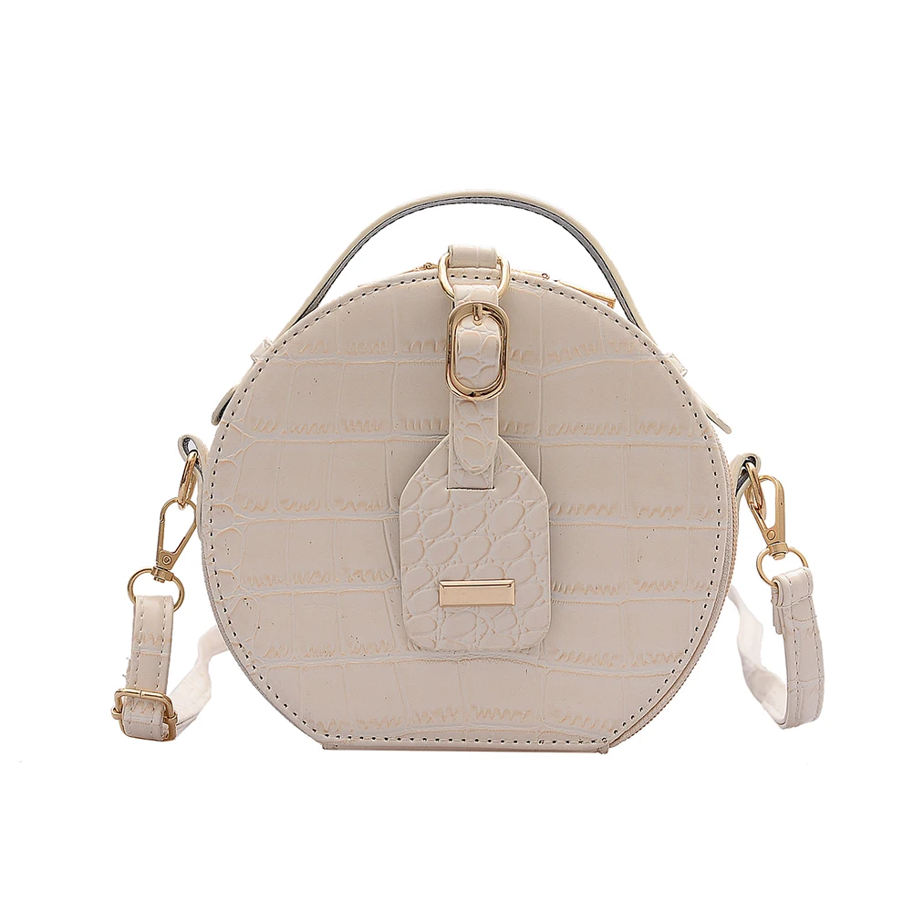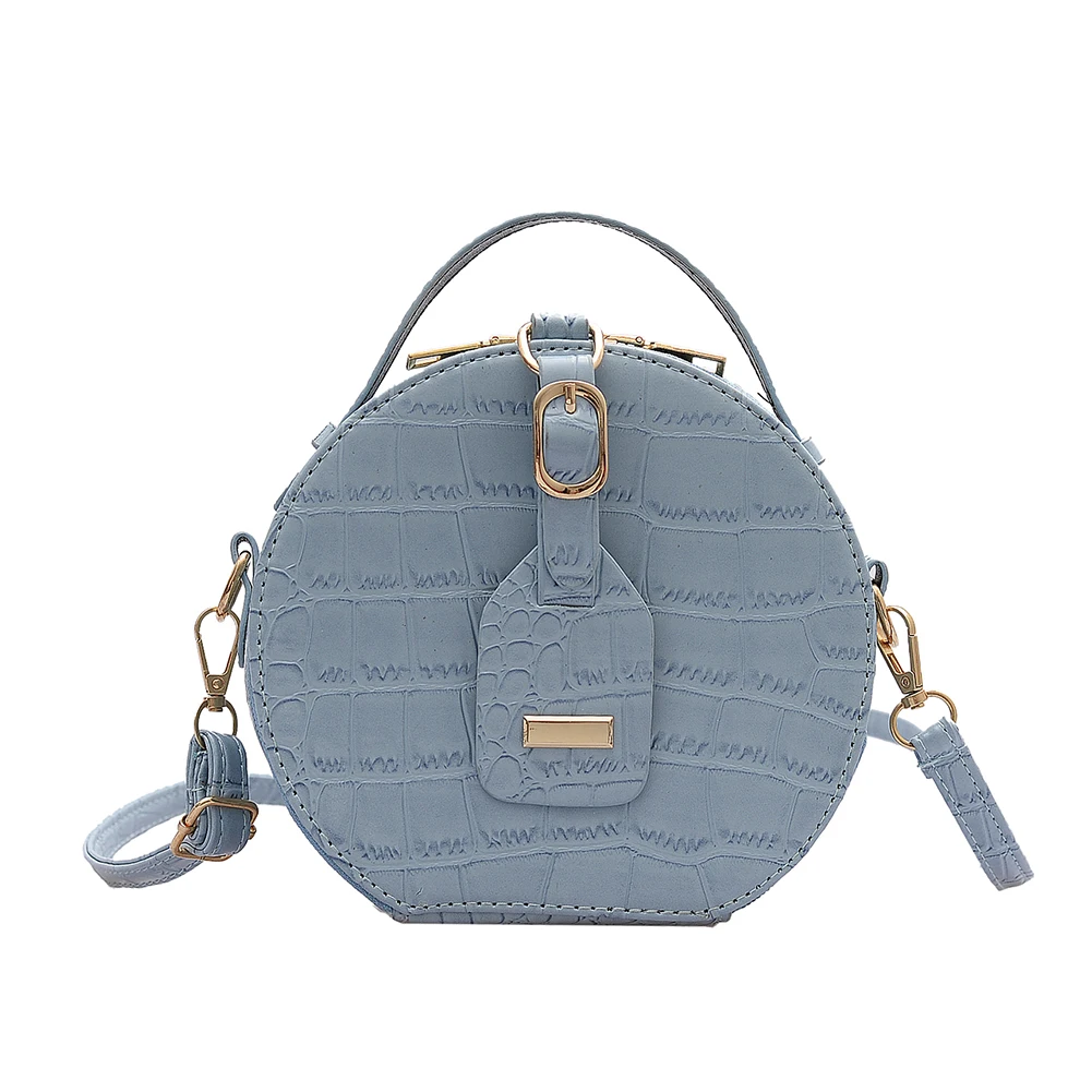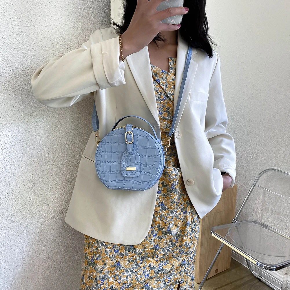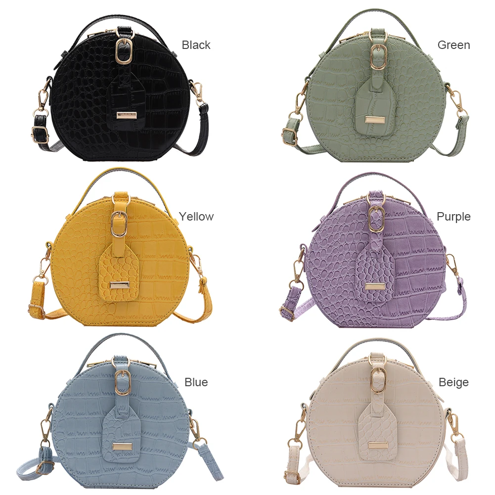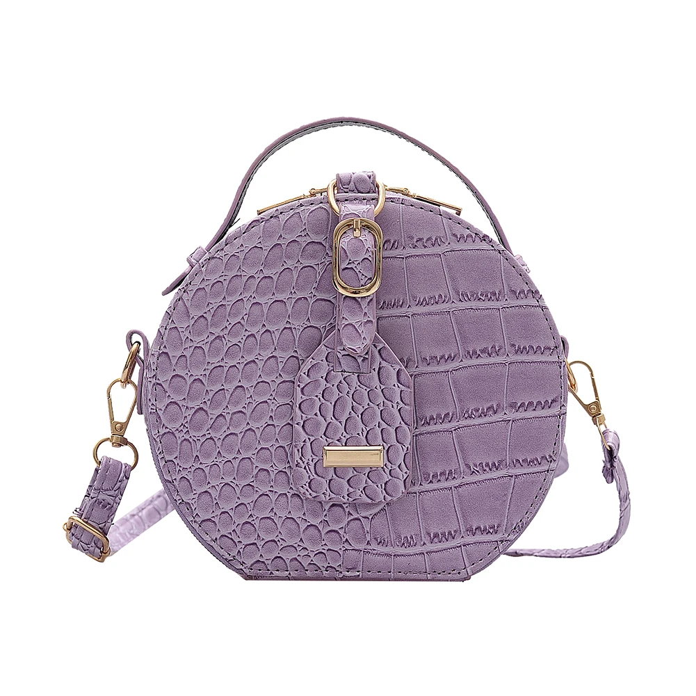 Fashion Women Alligator Pattern Shoulder Bag Round Circle Purse Totes Lady PU Leather Small Zipper Solid Color Messenger Satchel Handbags