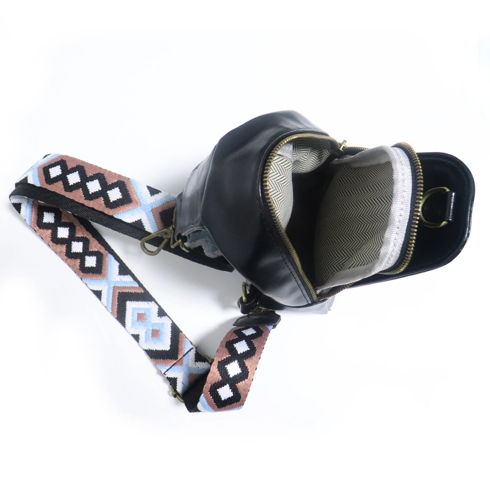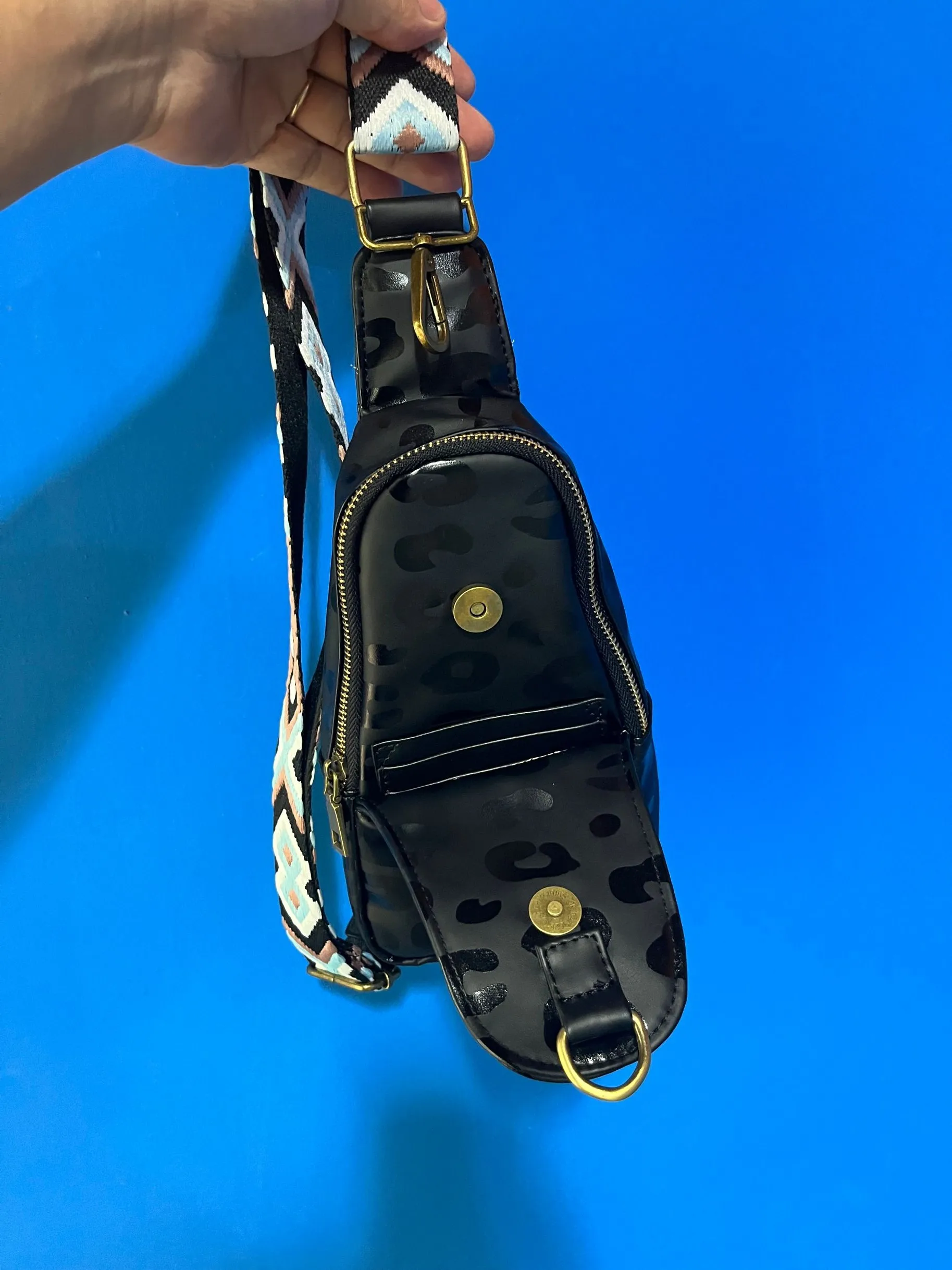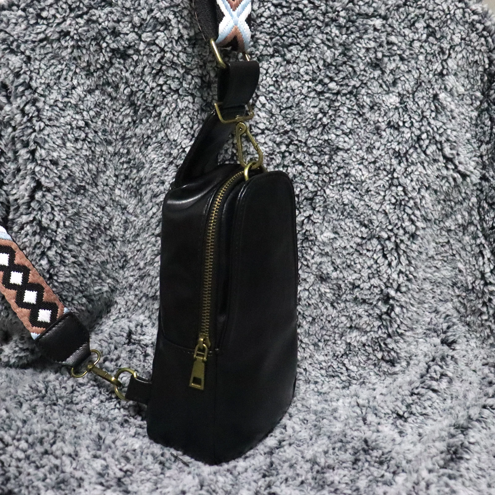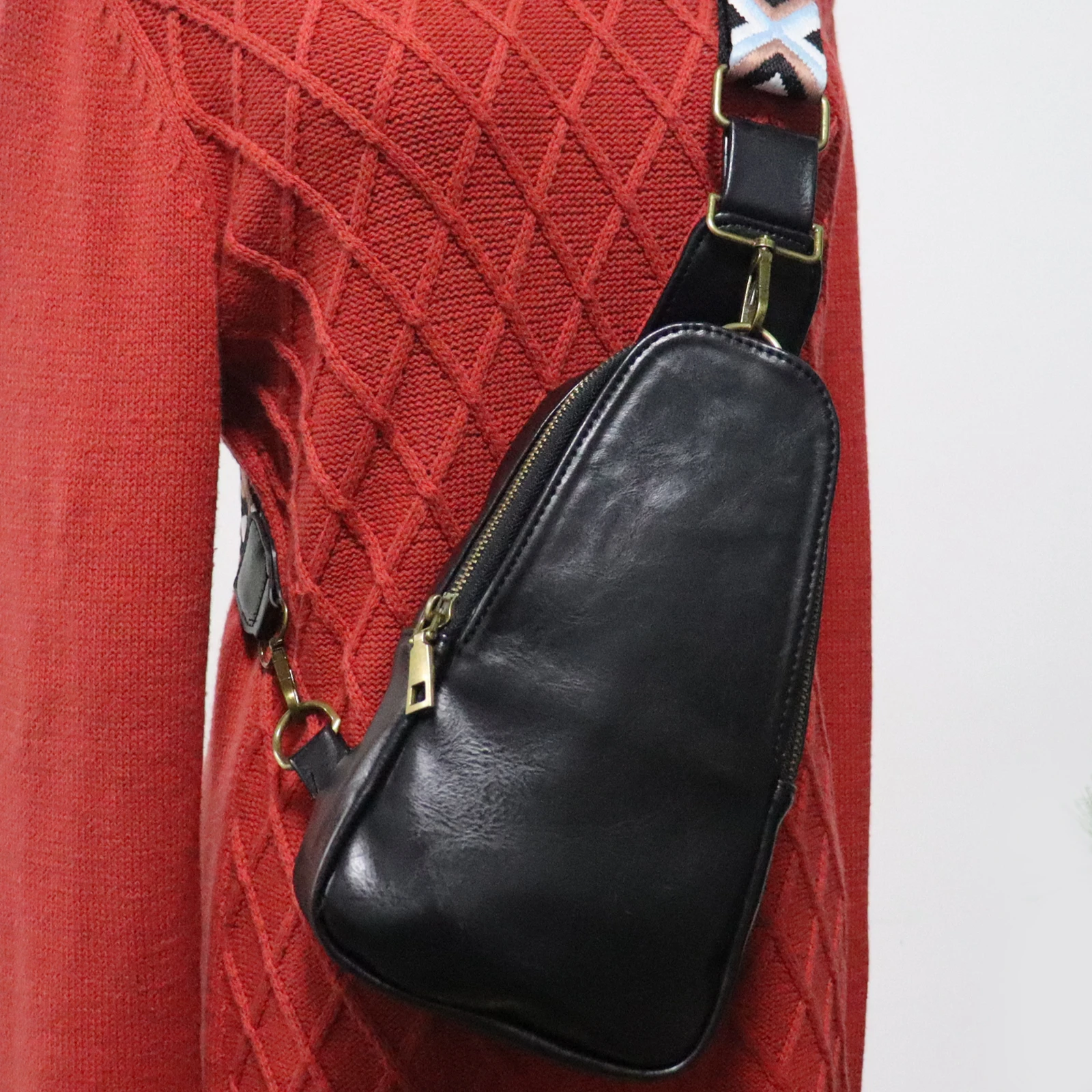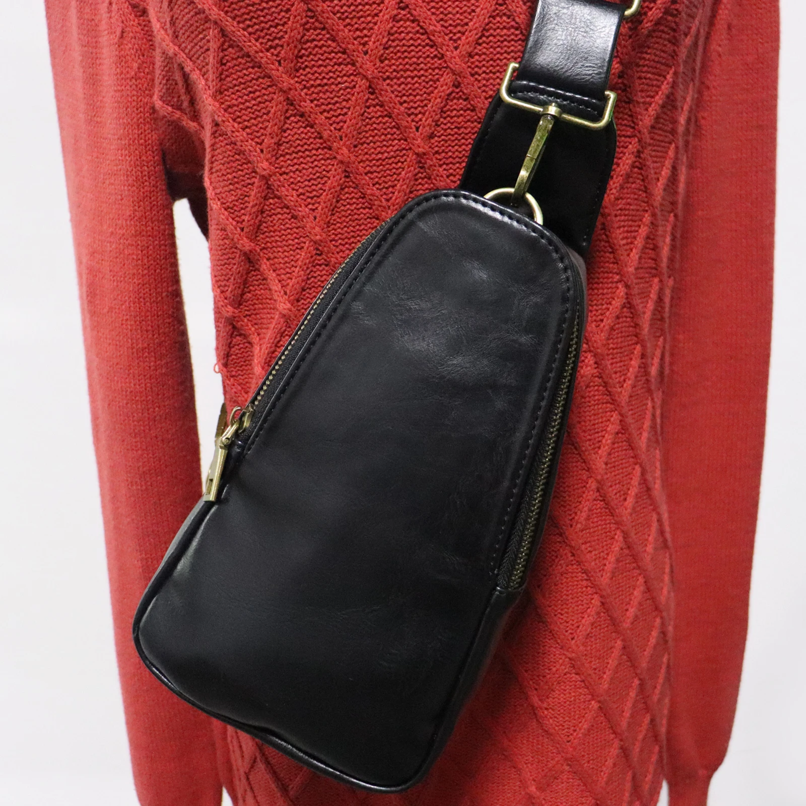 Women Fanny Packs Black Vegan Leather Sling Bags Crossbody Versatile Waist Bag Ladies Retrol Chest Bag Phone Shopping Holder103